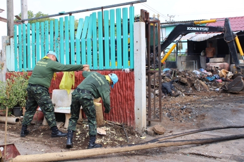 ดำเนินการพัฒนาความสะอาดพื้นที่บ้านเรือนประชาชนที่ประสบอัคคีภัย หมู่ที่ 7 ตำบลหนองม่วง อำเภอหนองม่วง จังหวัดลพบุรี